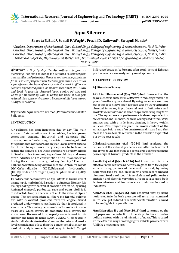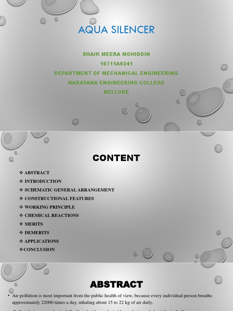 Aqua Silencer : Aqua silencer is one of the attempt taken in reduce the air pollution.