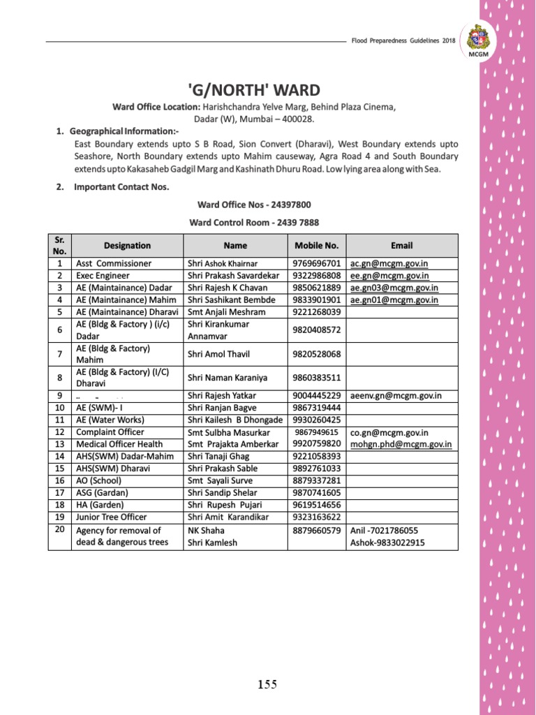 Dadar West Ward No : East ward office h west ward office hbt trauma hospital haji ali pumping station iit powai k east ward office k west ward office kalidas natya mulund west kandivali fire station kandivali workshop khotwadi santacruz (w).