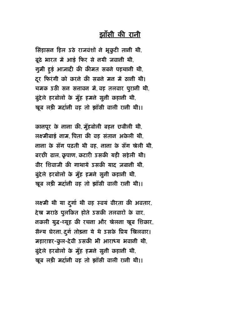 Jhansi Ki Rani Poem In Hindi Pdf - She died in a car accident on.