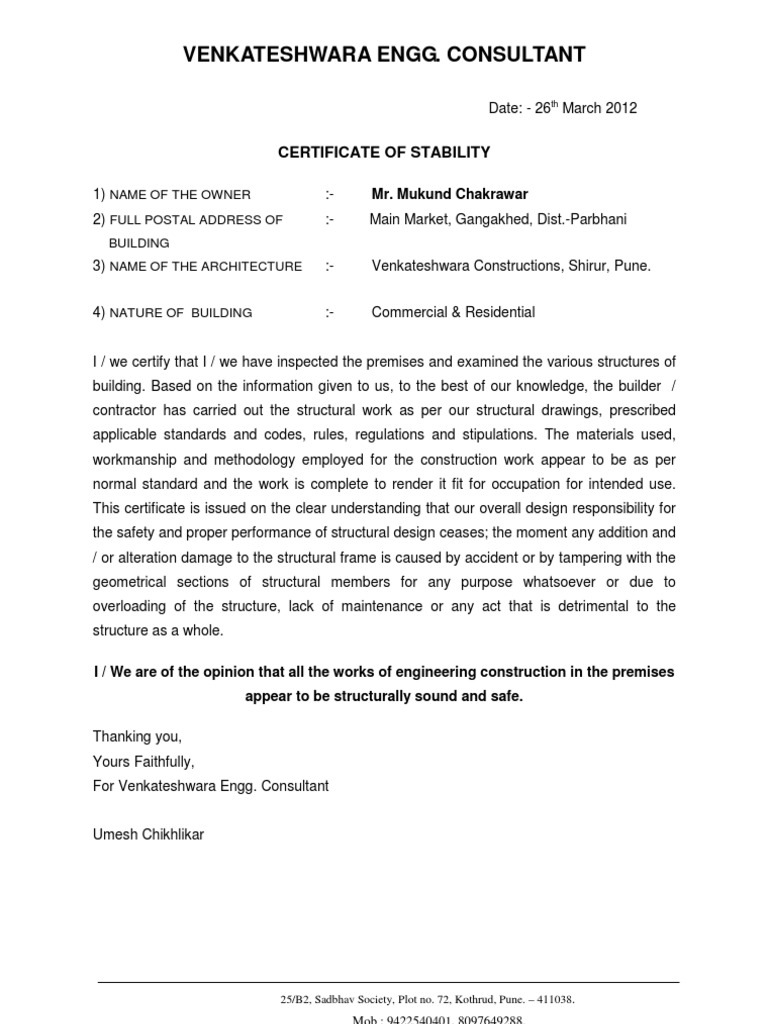 Stability Certificate - Kindly share your knowledge and detail about stability certificate.